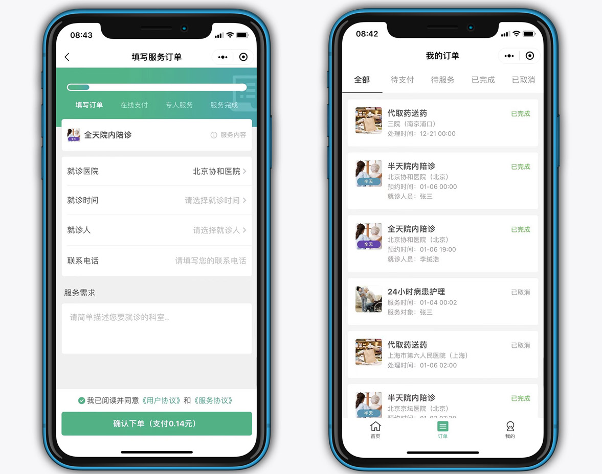 - 陪診師&用戶手機端:陪診小程序提供專門的陪診師和用戶手機端應用,方便用戶隨時隨地進行服務預約和管理自己的訂單。