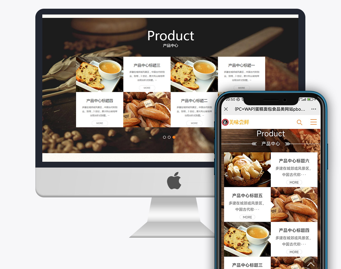 PC 端:該蛋糕、面包、食品網站模板,可以通過電腦瀏覽器訪問系統,進行網站瀏覽、操作和管理。