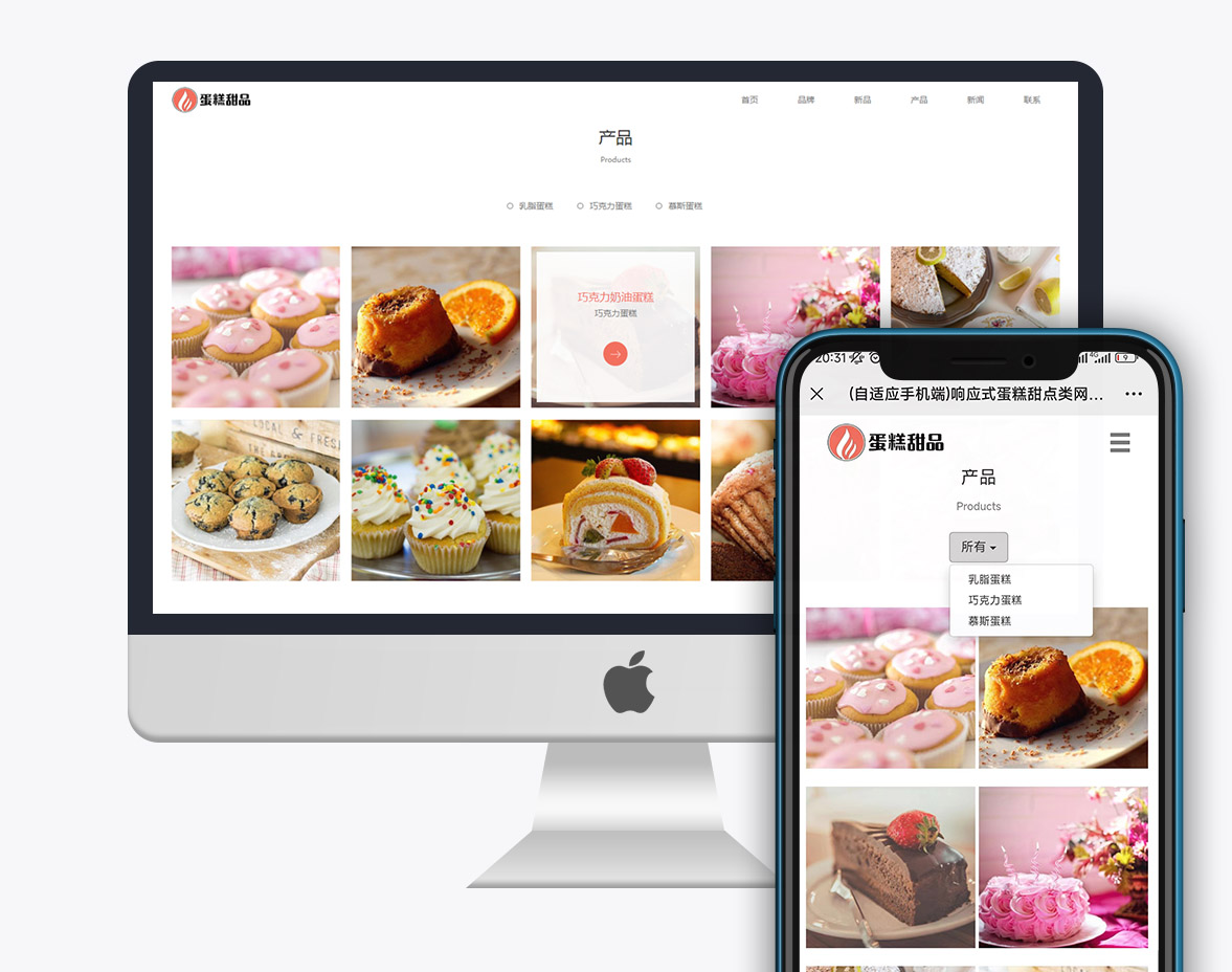【自適應PC+H5】甜品、糕點美食網站說明概述